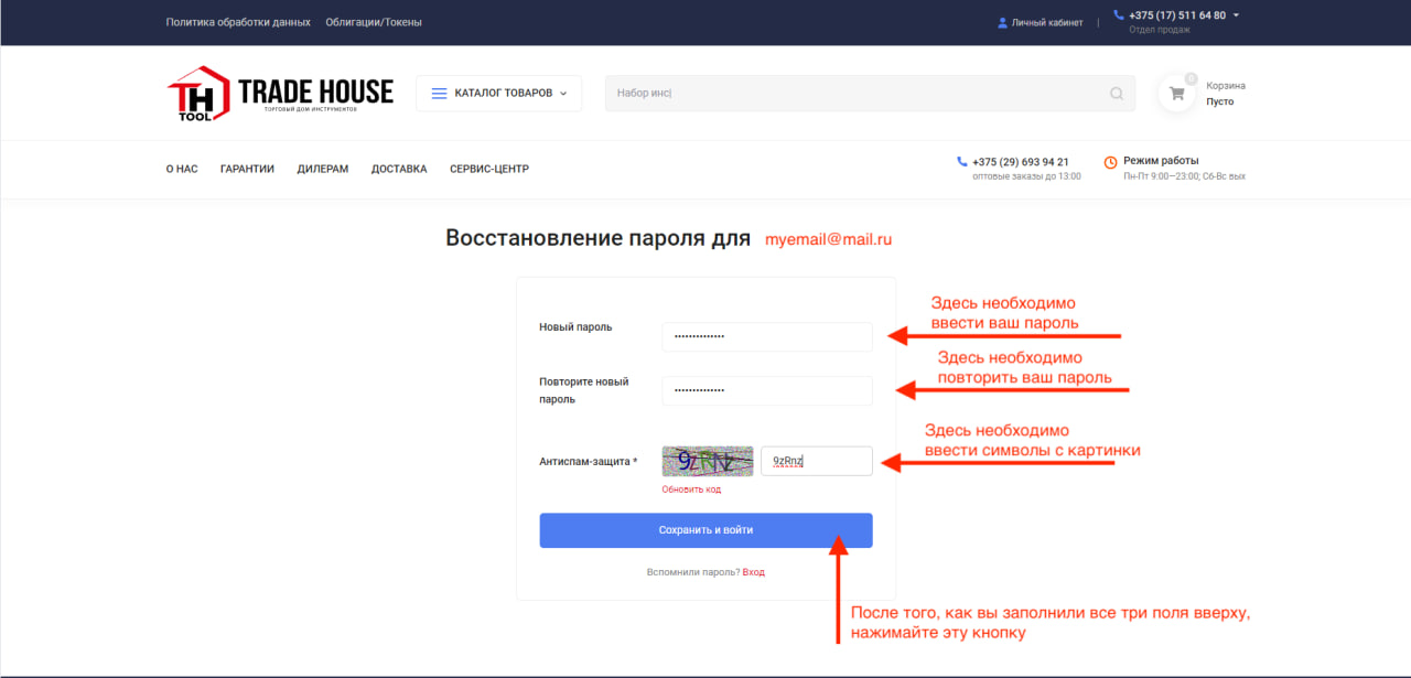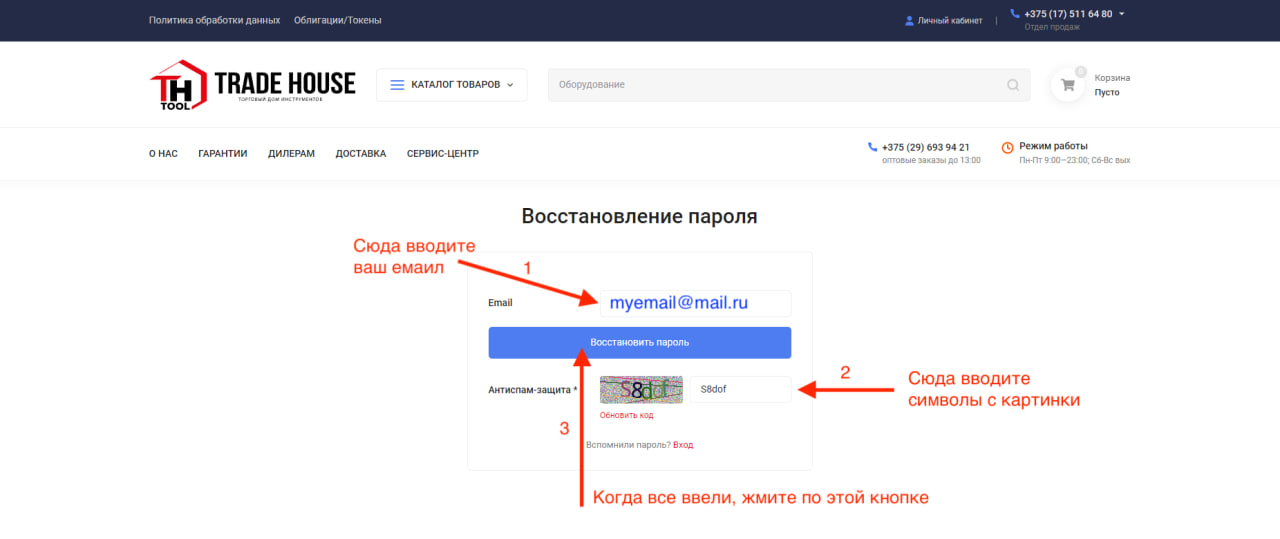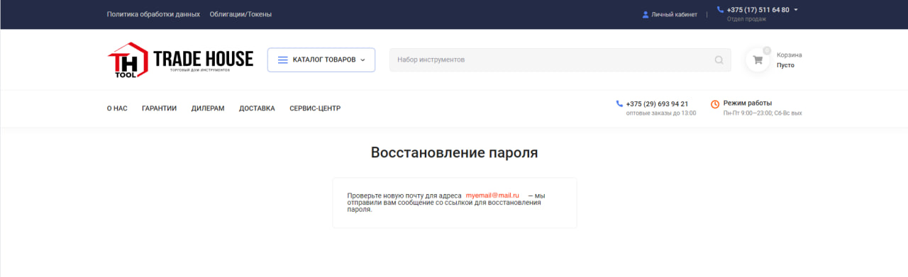 Поэтому вам необходимо пройти по этой ссылке: https://th-tool.by/forgotpass...